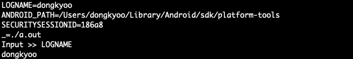 #include <stdio.h> #include <stdlib.h> #include <unistd.h> int main(int argc, char *argv[], char *envpp[]) { char buf[BUFSIZ]; char *env; // 모든 환경변수 리스트를 쭉 출력해봄 for (char **envp = envpp; *envp; envp++) { printf("%s\n", *envp); } printf("Input >> "); // 출력하고 싶은 환경변수를 입력 scanf("%s", buf); // 해당 환경변수의 값을 찾아서 출력 env = getenv(buf); if (env == NULL) { fprintf(stderr, "getenv error\n"); exit(1); } printf("%s\n", env); exit(0); }