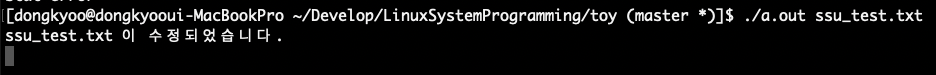 a.out 실행 후 파일을 수정하면 변화가 감지되는 모습