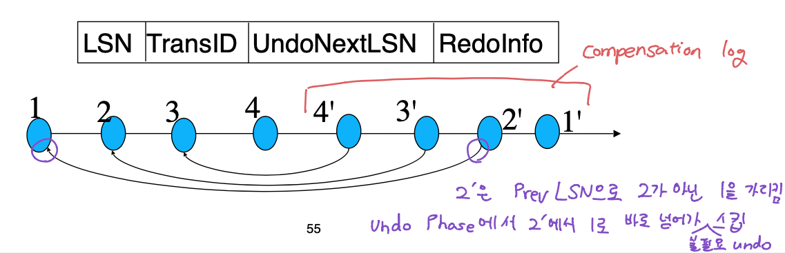 - UndoNextLSN 을 가짐 : 이미 undo 작업을 한 상황에서 또 하지 않게 하기 위함