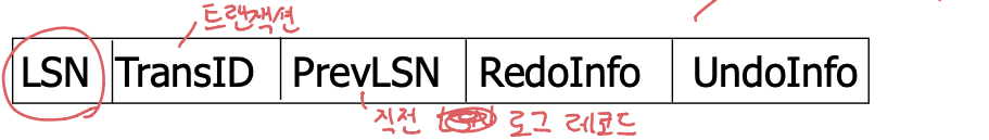 - 모든 로그 레코드는 동일 트랜잭션 내의 직전 레코드의 LSN 또한 저장하고 있음